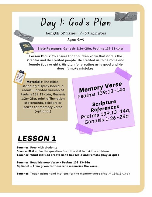 with Lesson Plans on who we are in Christ and our God-given purpose.